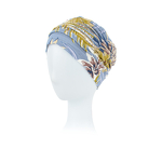 Lekki, przewiewny turban z wyrazistym, abstrakcyjnym wzorem. Elastyczny materiał nie uciska głowy nawet po wielu godzinach noszenia.