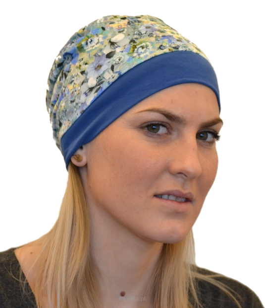 Turban z udrapowaną różą granatowy w kwiaty POLA 164/MOR118*