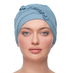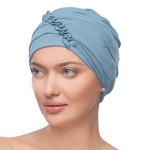 Gładki turban z lekkiego oddychającego materiału błękitny PORTO BM-Y363