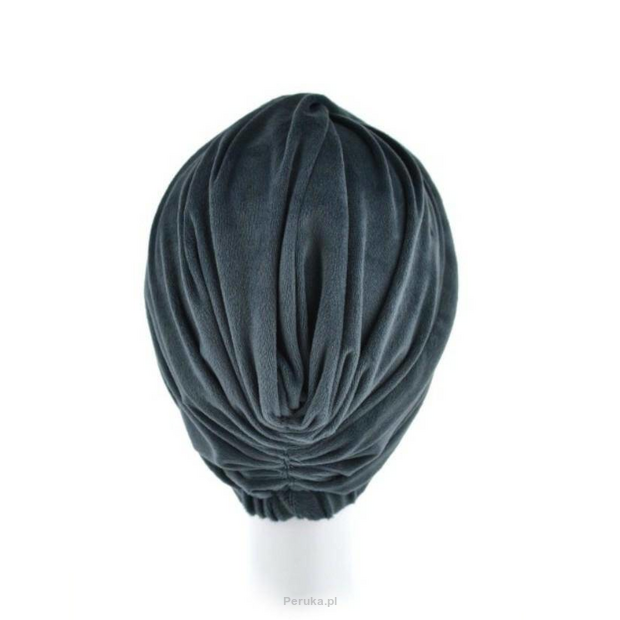 Cieplejszy model turbanu nawiązujący do stylu retro poprzez zebranie materiału w odwrócone "V" nad czołem. Ma lekko wydłużony kształt i sporo marszczeń nadających objętości.