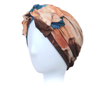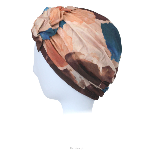 Turban z materiałowym elementem dekoracyjnym z przodu akwarelowy malarski print RIMINI B554+B128