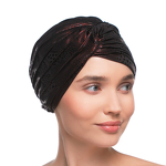 Ruby jest ciepłym turbanem z lekką podszewką z bambusowych włókien, która ochroni wrażliwą skórę głowy od chłodu. Model został wykonany z elastycznych materiałów, oferujących dobre dopasowanie do kształtu głowy i odczucie komfortu nawet po dłuższym czasie noszenia. Przednia część jest przyozdobiona połączeniem końcówek pasm materiałów, z których uszyto turban. Uzupełniają je liczne przeszycia, które optycznie powiększają prezentowane nakrycie głowy. Kolor nawiązuje do jednego z kamieni szlachetnych oraz głębokiej barwy czerwonego wina.