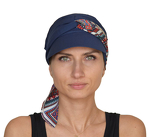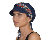 Wersja modelu turbanu Sara. Posiada w przedniej części usztywniany daszek. Idealny na słoneczne dni. Chroni twarz przed promieniami słonecznymi. Dostępny w wielu wersjach kolorystycznych.