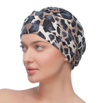 Zwarty turban pozwalający na ułożenie luźnych drapowań tak, aby wizualnie zwiększyć jego objętość po założeniu na głowę. Wyrazisty wzór z połączeniem beżów i szarości nadaje charakteru, a dzięki większemu kontrastowi barw, Stone będzie odpowiedni dla nieco odważniejszych stylizacji.