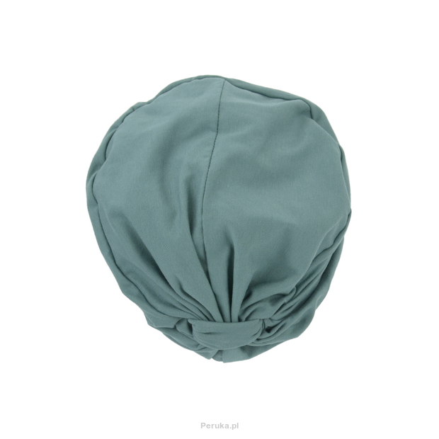 Miękki turban wykonany z miękkiego i jednolitego kolorystycznie materiału. Zebranie i uwiązanie tkaniny z tyłu głowy nadaje turbanowi ciekawy kształt i ozdobne wykończenie. Nakrycie głowy posiada piankowe usztywnienie nad czołem.