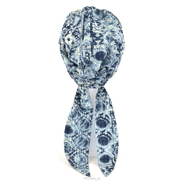 Elegancki i modny biało-niebieski turban we wzory VENICE 62 koronka jeans*