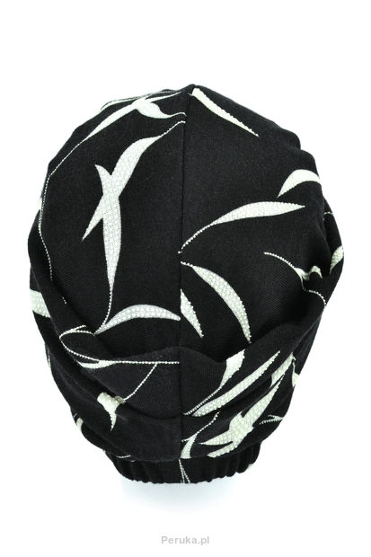 Czarny turban z motywem białych liści WINTER GARDEN*