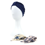 Komplet składający się z podstawowego turbanu oraz dwóch, dopasowanych kolorystycznie, wzorzystych szarf.