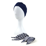 Komplet granatowy turban i dwie wzorzyste szarfy ZANZIBAR B23/8