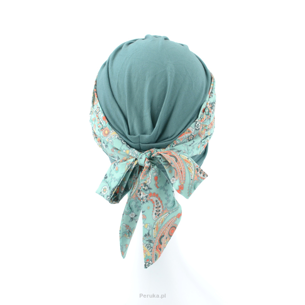 Komplet składający się z podstawowego turbanu oraz dwóch, dopasowanych kolorystycznie, wzorzystych szarf.