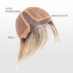 Model United to peruka z włosów syntetycznych utkanych na bazie, którą charakteryzuje wykonanie maszynowe na tresach, mikroskóra na linii przedziałka oraz linia rozmyta z przodu. Specjalne włókno syntetyczne doskonale imituje prawdziwe włosy.