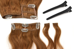 - 1 pasmo - szerokość ok. 14cm, złożone jest z dwóch nakładających się na siebie warstw włosów. Istnieje możliwość przeciągnięcia własnych włosów pomiędzy tresami (zapięcie na 4 klipsy).
